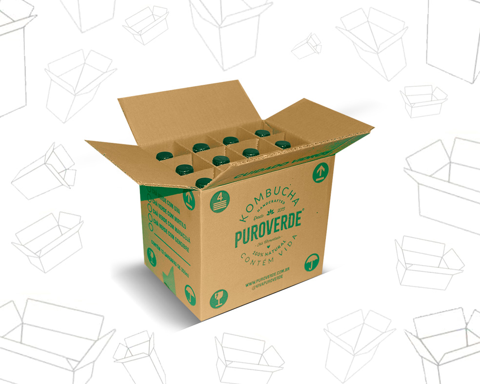 A ETESCO EMBALAGENS produz caixas de papelão ondulado para kombucha em diversas configurações.